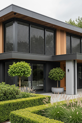 • Energy Efficiency: By blocking solar heat before it hits the glass, our exterior designs significantly improve your home’s thermal comfort and energy efficiency.