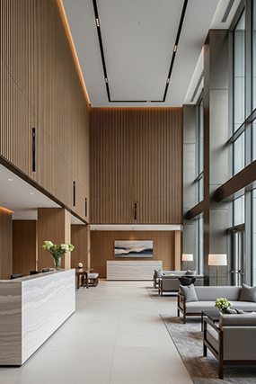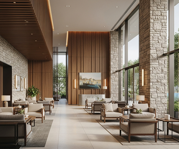 Every detail, from the bespoke reception desk to the ergonomic furniture, reflects a commitment to quality and contemporary style. By fusing aesthetic beauty with operational practicality, the design fosters a welcoming yet secure environment. This project stands as a testament to the power of first impressions, delivering a reception area that is as inviting and sustainable as it is visually commanding.